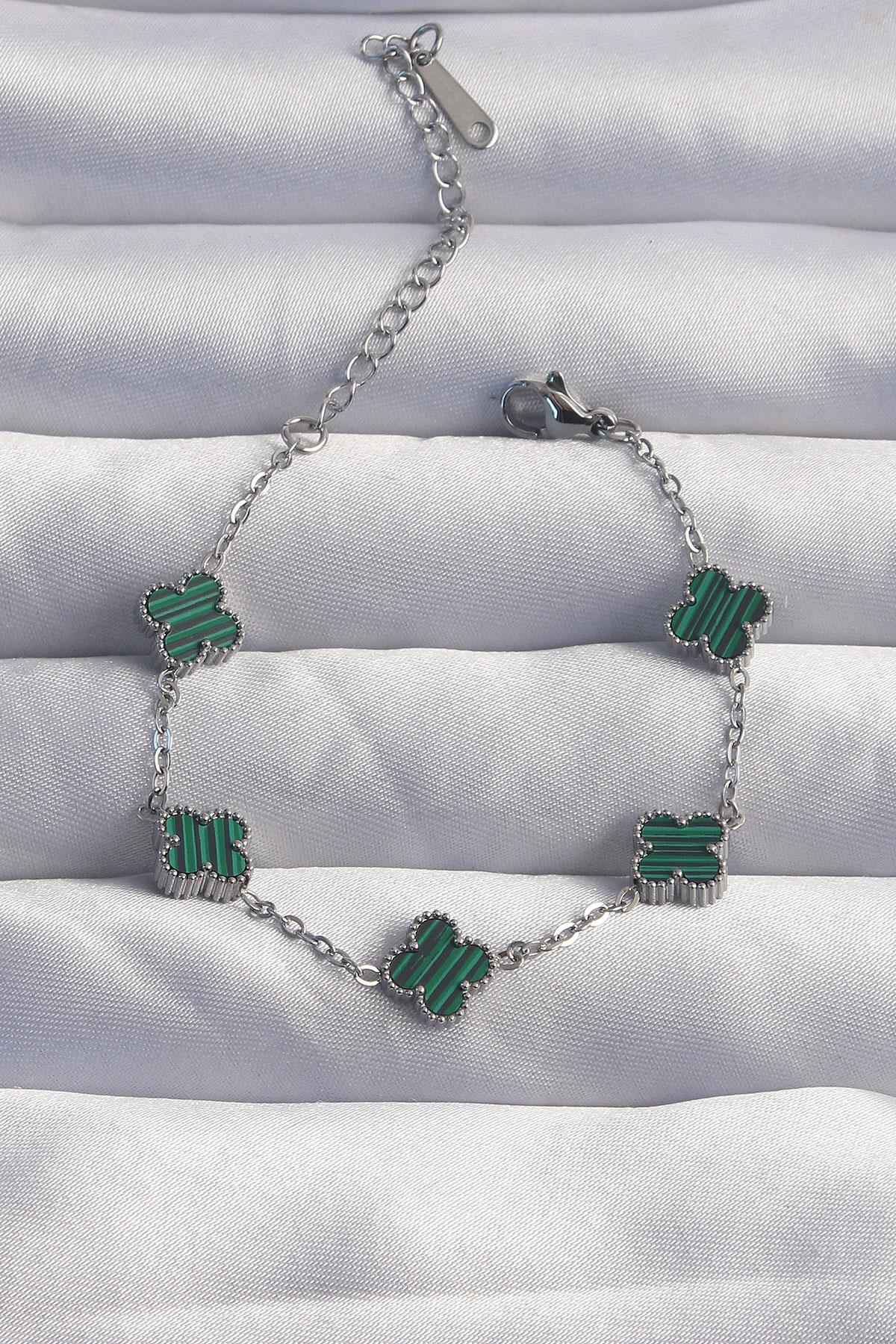316L Çelik Baby Boy Gümüş Renk Çizgili Yeşil Mineli Yonca Bileklik (BB6270)