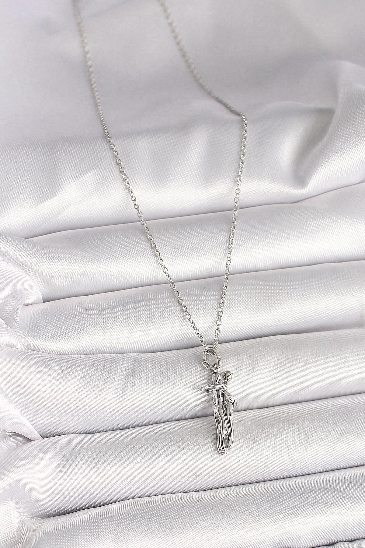 316L Çelik Gümüş Renk Zincir Sarılma Model Kadın Kolye (BKO9977)