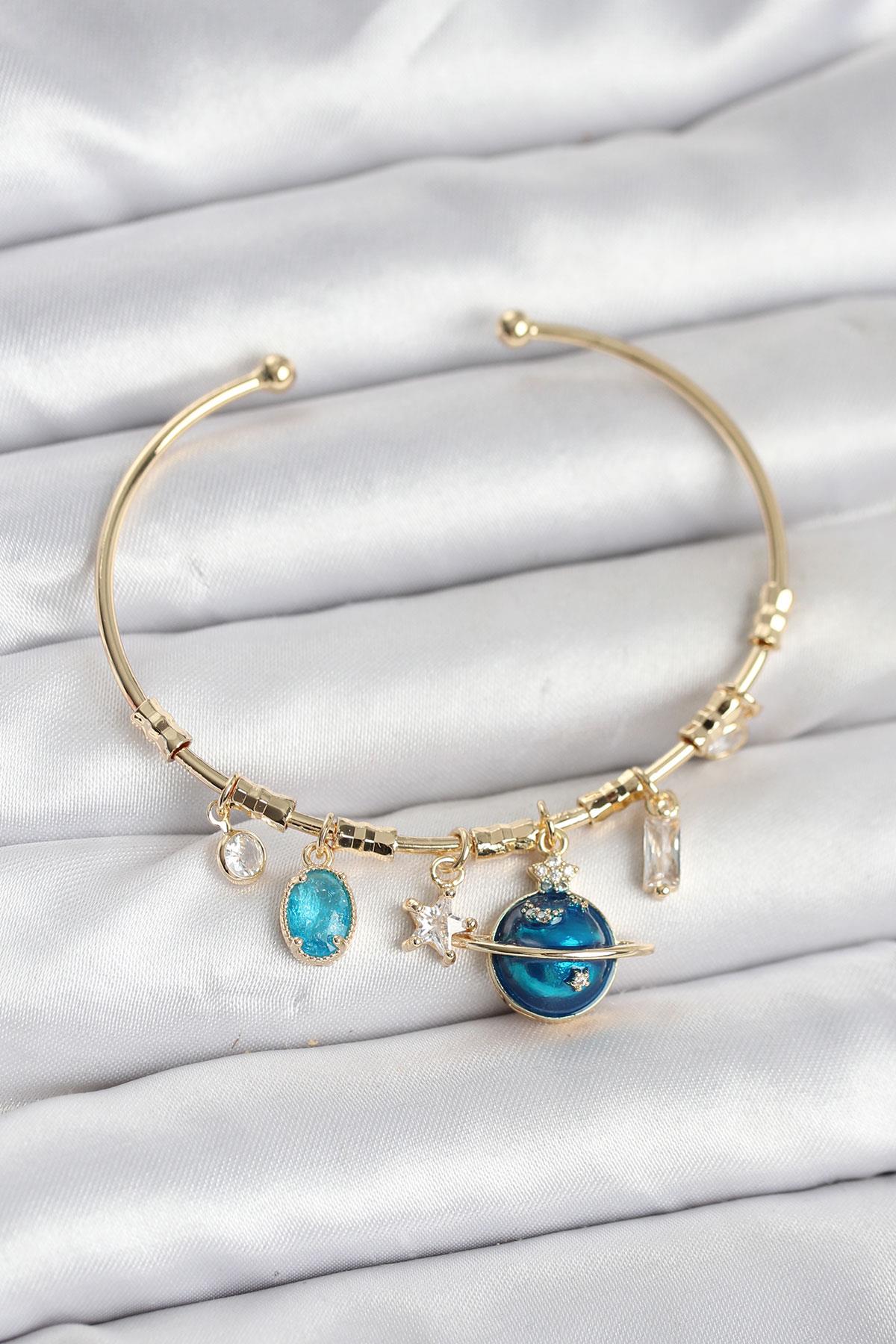 Gezegen Charmlı Gold Renk Pirinç Kadın Bileklik (BB8047)
