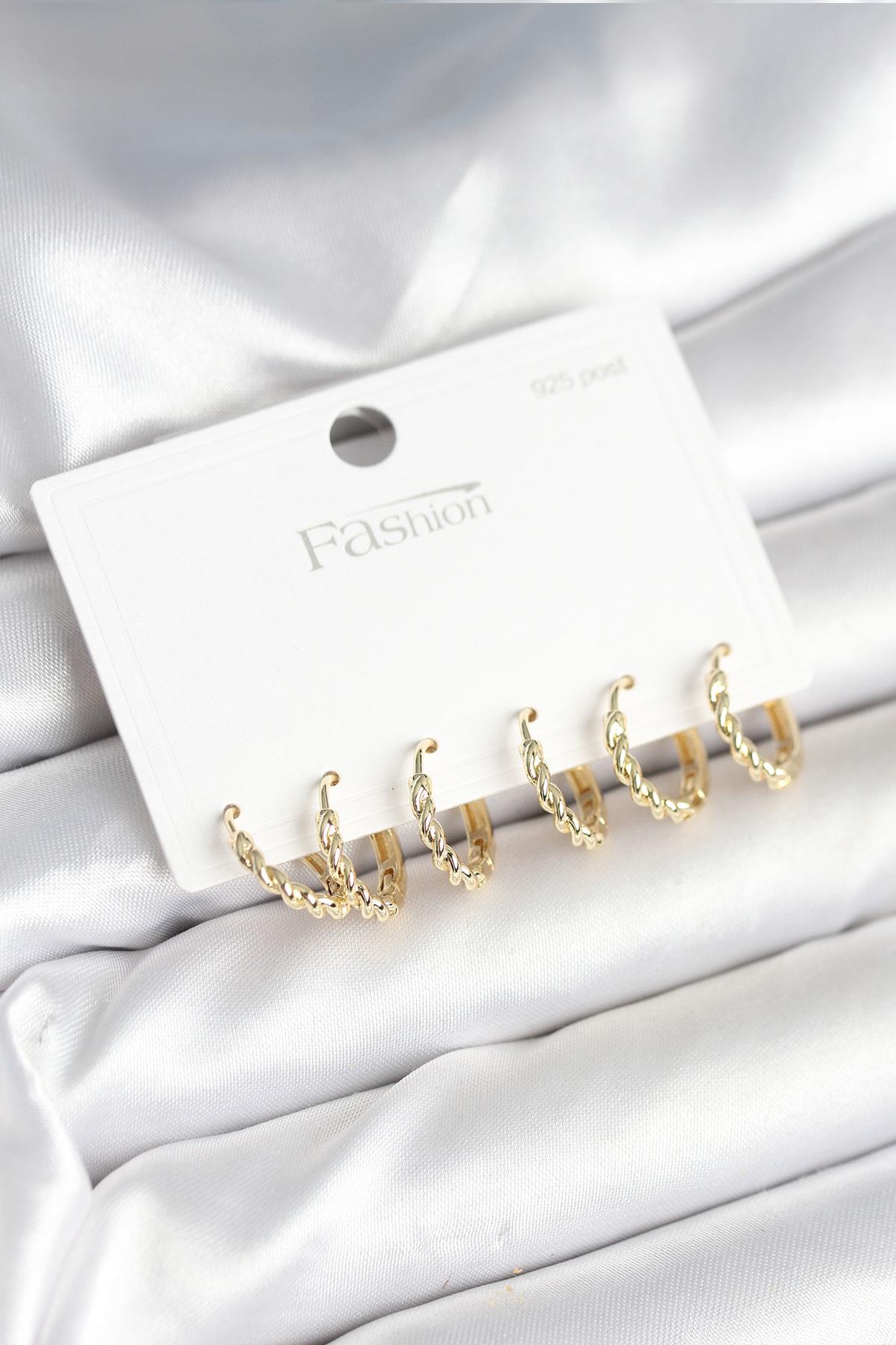 Gold Renk Burgu Halka Model 925 Ayar Gümüş Çivili Pirinç Küpe Seti (BKP11268)