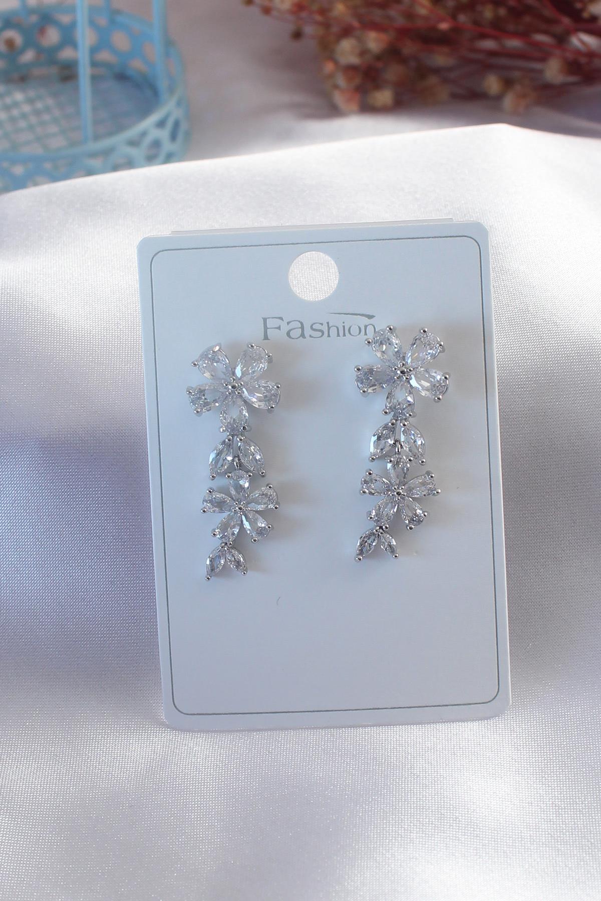 Gümüş Renk Çiçek Model Zirkon Taşlı Kadın Küpe (BKP7058)