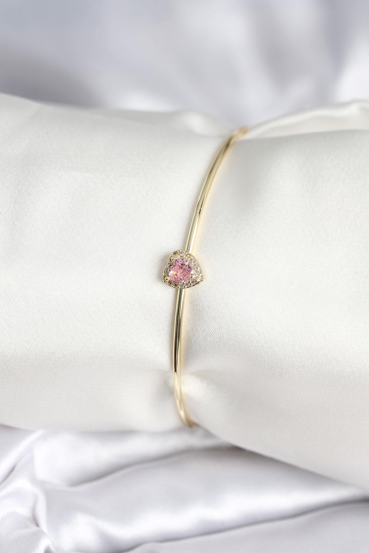 Pembe Zirkon Taşlı Kalp Model Gold Renk Kadın Bileklik (BB8001)