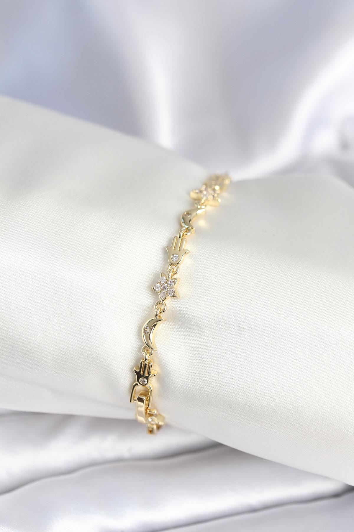 Pirinç Gold Renk Kadın Manifest Bileklik (BB7973)