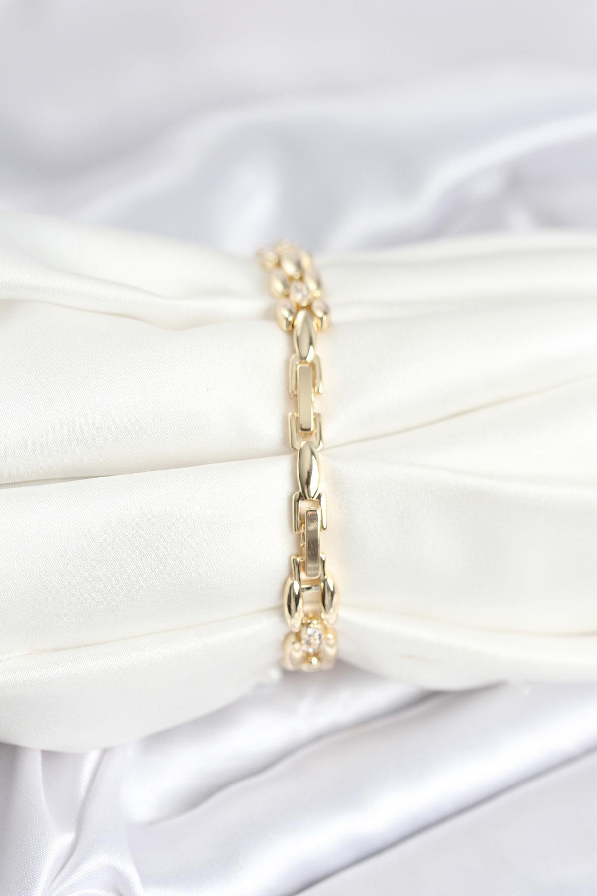 Pirinç Gold Renk Zincir Model Zirkon Taşlı Kadın Bileklik (BB8029)