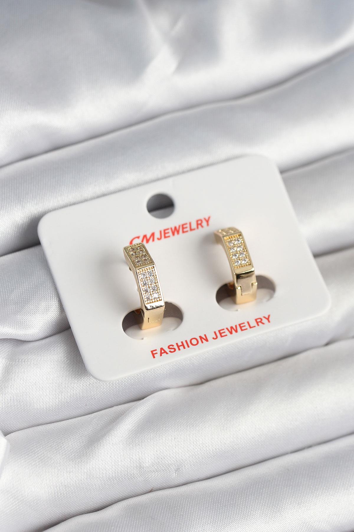 Pirinç Gold Renk Zirkon Taşlı Altıgen Kadın Küpe (BKP11245)