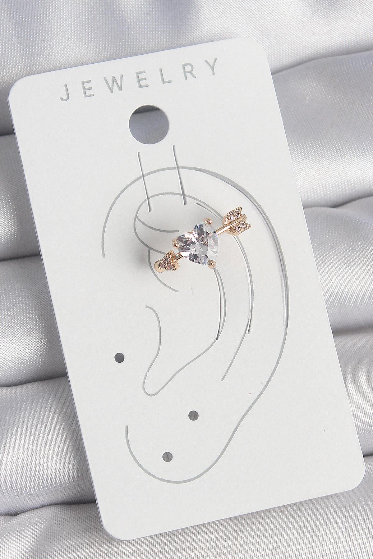 Pirinç Gold Renk Zirkon Taşlı Kalp Ok Model Kadın Kıkırdak Küpe (BKP10576)