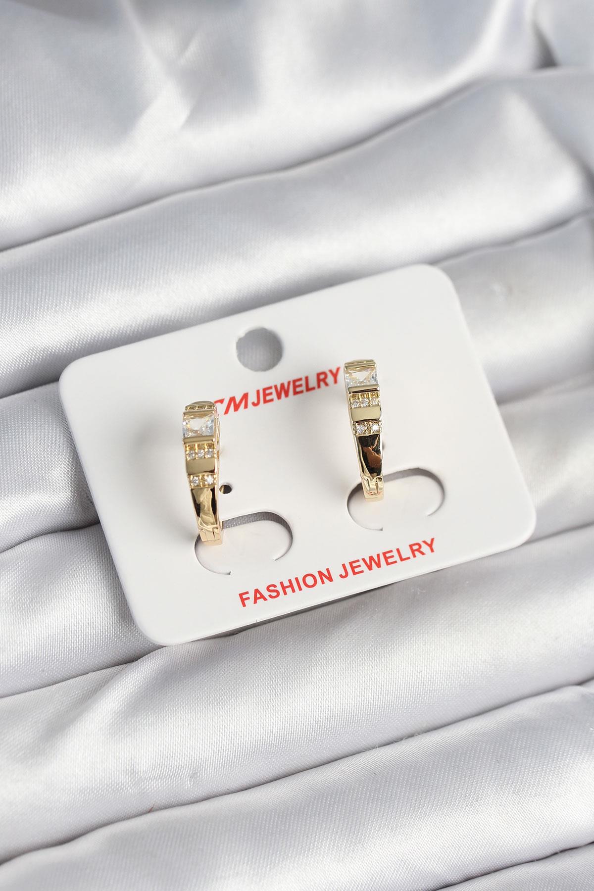 Pirinç Gold Renk Zirkon Taşlı Vintage Kadın Küpe (BKP11244)