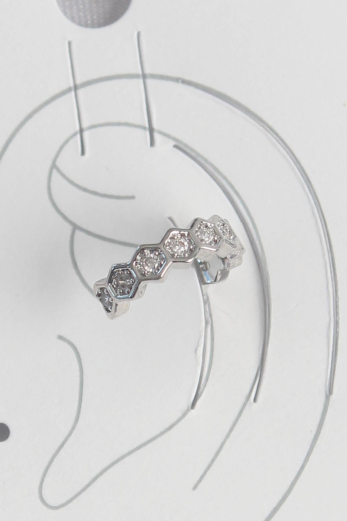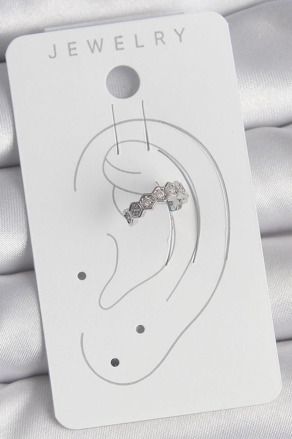 Pirinç Gümüş Renk Bal Peteği Model Zirkon Taşlı Kadın Kıkırdak Küpe (BKP10568)