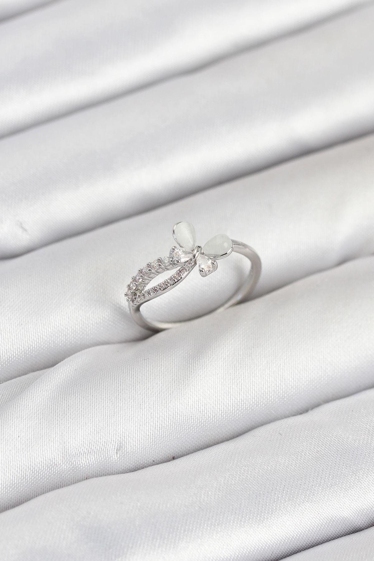 Pirinç Gümüş Renk Kelebek Zirkon Taşlı Kadın Yüzük (BYK3855)