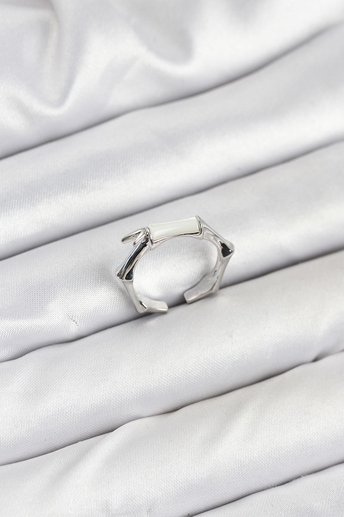 Pirinç Gümüş Renk Kemik Model Kadın Yüzük (BYK3849)