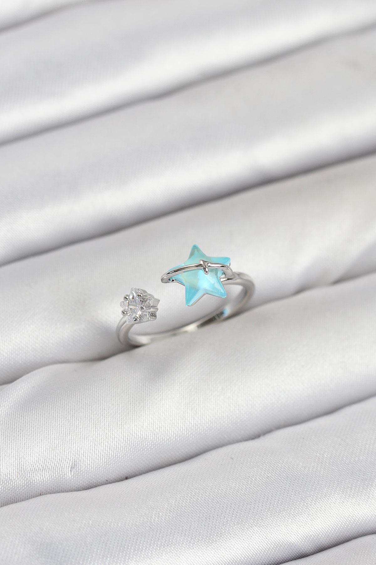 Pirinç Gümüş Renk Mavi Yıldızlı Model Kadın Yüzük (BYK3869)