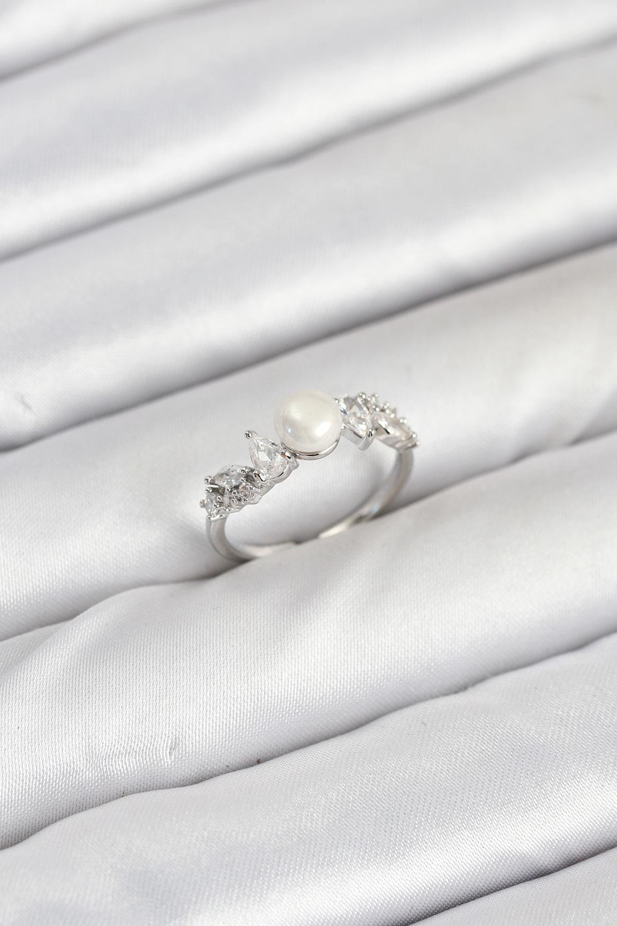 Pirinç Gümüş Renk Zirkon Taşlı İncili Model Kadın Yüzük (BYK3853)