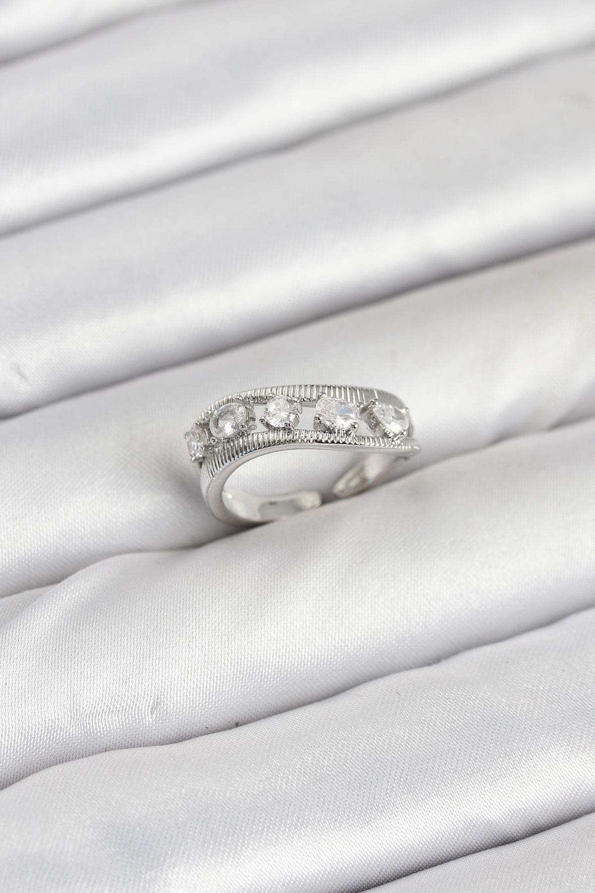 Pirinç Gümüş Renk Zirkon Taşlı Kadın Yüzük (BYK3873)