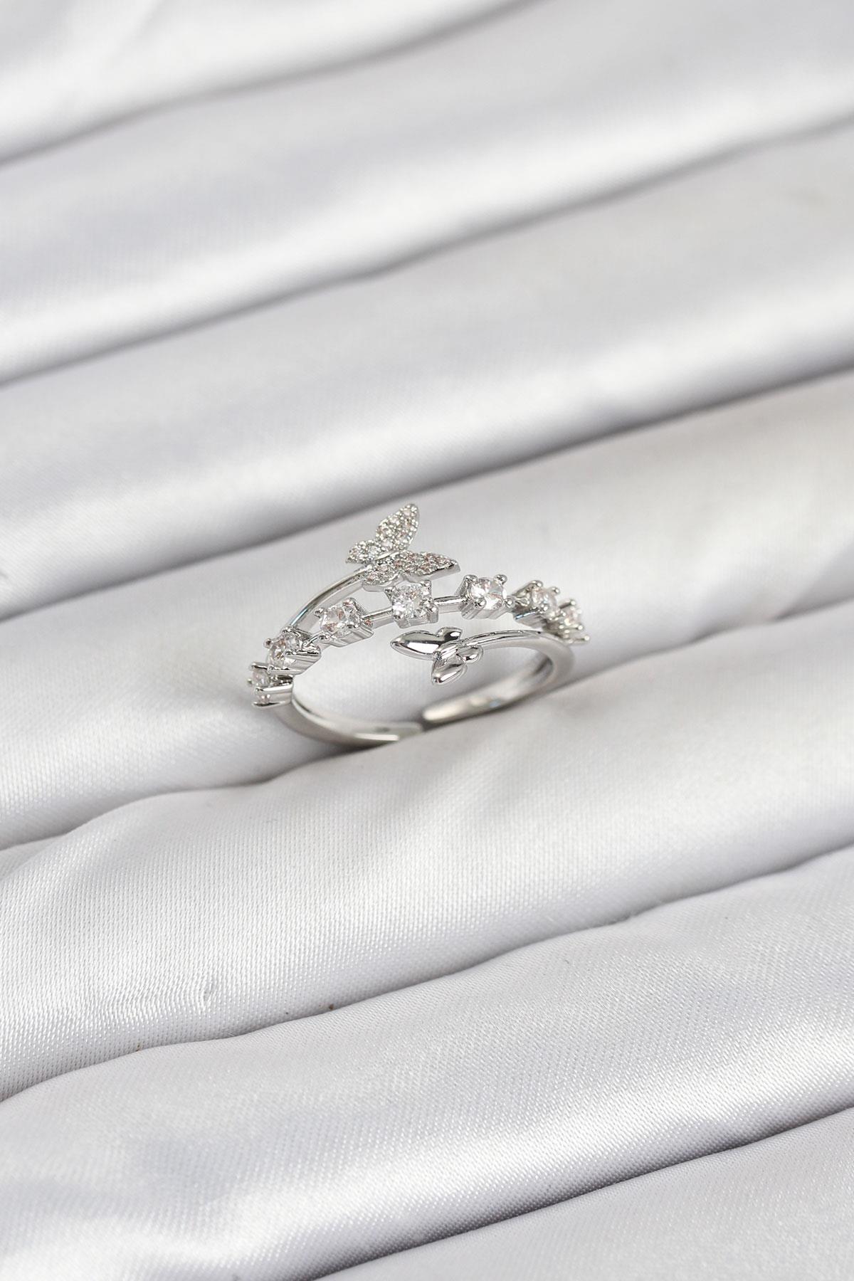 Pirinç Gümüş Renk Zirkon Taşlı Kelebek Model Kadın Yüzük (BYK3851)