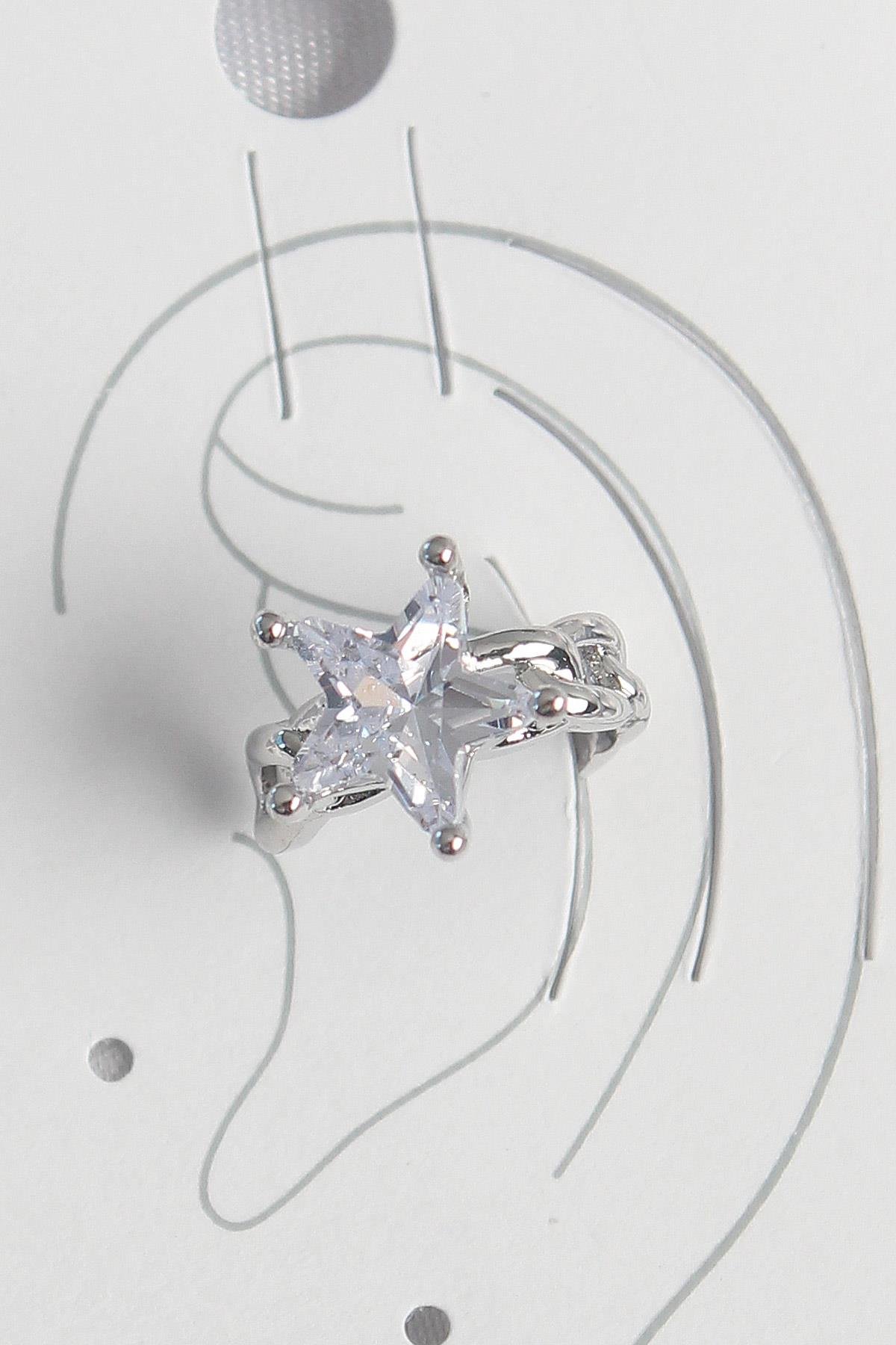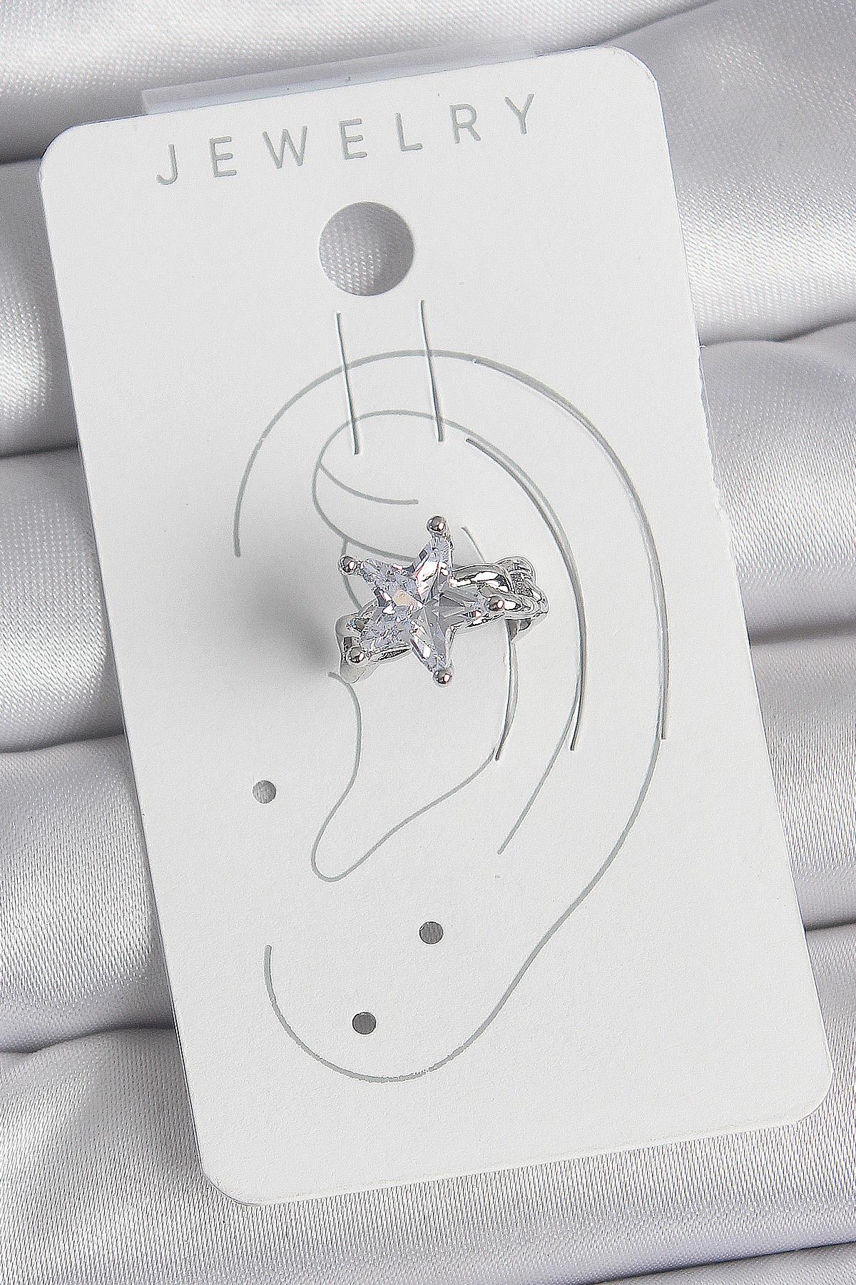 Pirinç Gümüş Renk Zirkon Taşlı Yıldız Model Kadın Kıkırdak Küpe (BKP10558)