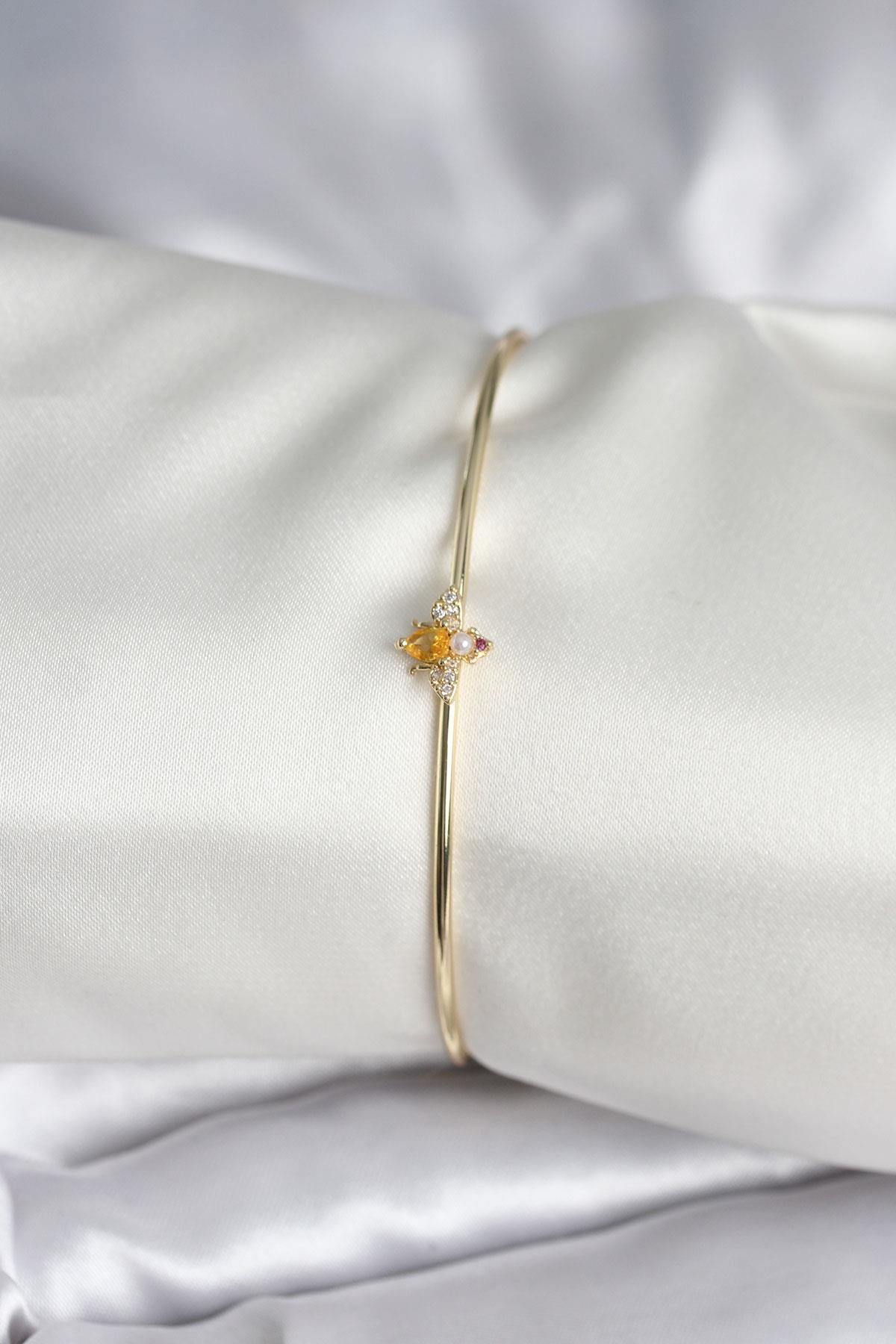 Sinek Figürlü Gold Renk Pirinç Kadın Bileklik (BB8000)