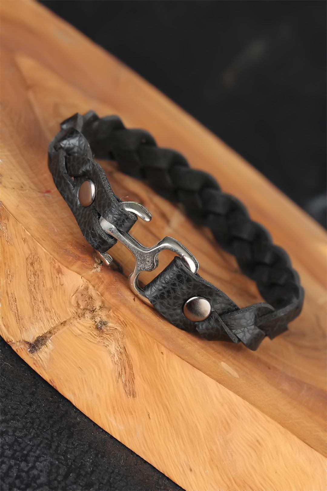 Şıklığa Siyah Renk Örgü Model Çapa Aksesuarlı Deri Erkek Bileklik ile bir adım daha yakın olun.