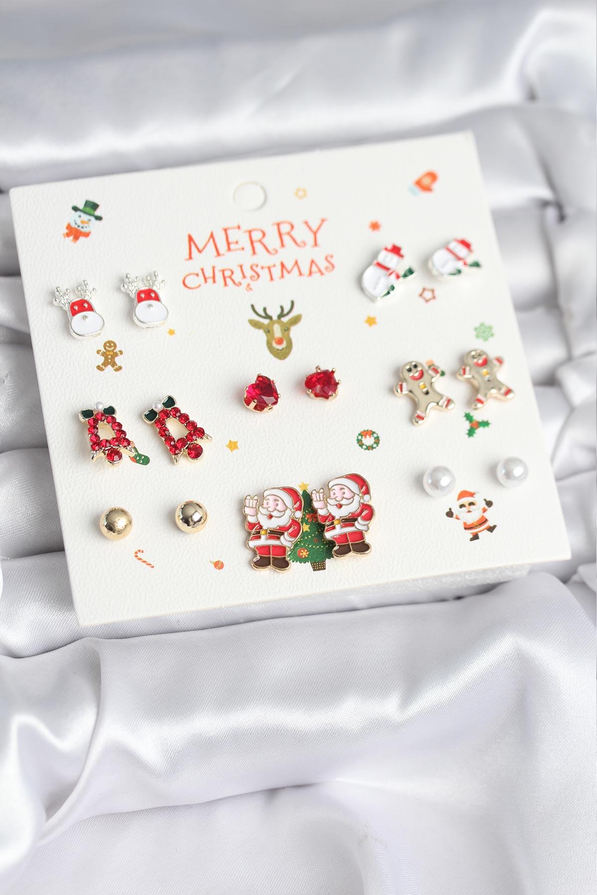 Yılbaşı Temalı Karışık Model 8 Çift Yılbaşı Temalı Kadın Küpe Seti (BKP11399)
